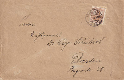 Inland cover (1-20 g) from 17.01.1919 franked with one stamp a 15 Pfennig (=15 Pfennig) |