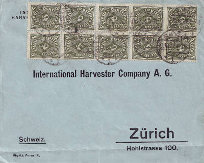 Foreign cover (1-20 g) from 21.12.1922 franked with 10 stamps a 8 Mark (=80 Mark)