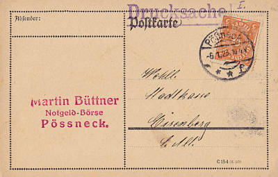 Inlandsdrucksache (1-25 g) vom 06.01.1923 frankiert mit einer Marke a 5 Mark (=5 Mark)