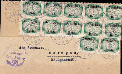 Inlandspostkarte vom 12.01.1923 frankiert mit 12 Marken a 1¼ Mark (=15 Mark) |