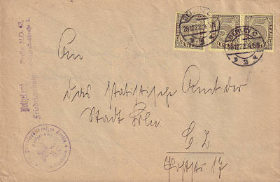 Local cover (21-100 g) from 28.12.1922 franked with 3 stamps a 5 Mark (=15 Mark)