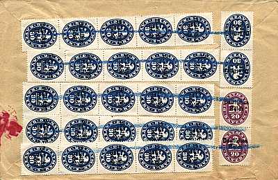 Local cover (1-20 g) from 05.01.1923 franked with 34 stamps (=10 Mark)