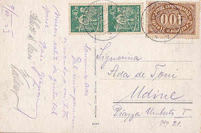 Foreign postcard from 10.07.1923 franked with 3 stamps (=480 Mark)