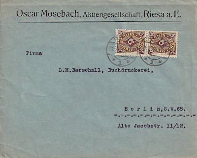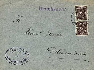 Inland printed matter (1-25 g) from 31.07.1923 franked with 2 stamps a 30 Mark (=60 Mark) |