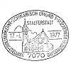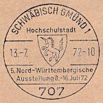 Einkreisstempel mit zwei Rechtecke und Sehne (bo2z) "SCHWÄBISCH GMÜND 1/ (Stadtwappen)/ (Datum)/ (Johanniskriche)/ 7070"
