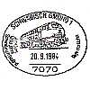 Einellipsenstempel mit Kurzsteg (bo2z3bu) "SCHWÄBISCH GMÜND 1/ (Lokomotive)/ (Datum)/ 7070/ Jubiläum/ 1200