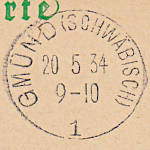 "Zweikreisstegstempel (bozbu) "(14a) SCHWÄBISCH GMÜND 1/ (Datum)/ aa"; sechs flache Wellenlinien mit engem Abstand