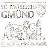 "SCHWÄBISCH/ GMÜND/ (Stadt- wappen)/ (Stadtansicht)/ Lebensfroh Liebenswert"; Einkreisstempel mit Stegsegment oben (bo3z)