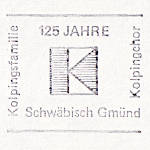 "125 JAHRE/ Kolpingfamilie/ (Logo)/ Kolpingchor/ Schwäbisch Gmünd"; Einkreisstempel mit Stegsegment oben (bo3z) "SCHWÄBISCH GMÜND 1/ mb/ (Datum)/ 707"