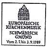 "(Münsterchor)/ EUROPÄISCHE/ KIRCHENMUSIK/ SCHWÄBISCH/ GMÜND/ Vom 2.7. bis 3.9.1989"; Einkreisstempel mit Stegsegment oben (bo3z)