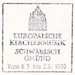 "(Münsterchor)/ EUROPÄISCHE/ KIRCHENMUSIK/ SCHWÄBISCH/ GMÜND/ Vom 6.7. bis 2.9.1990"; Einkreisstempel mit Stegsegment oben