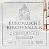 "(Münsterchor)/ EUROPÄISCHE/ KIRCHENMUSIK/ SCHWÄBISCH/ GMÜND/ Vom 1.7. bis 6.9.1992"; Einkreisstempel mit Stegsegment oben (bo3z)