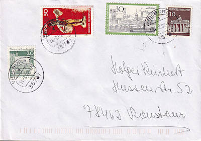 Brief mit abgeschliffener roter Briefmarke