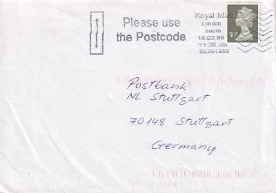 Briefe mit Nadeldruckerentwertung; die Zeit der Stempel geht zu Ende...