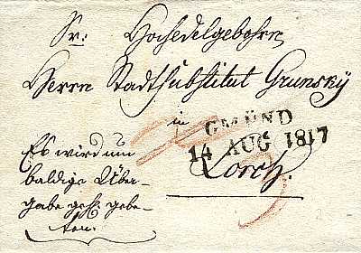 schwarzer Zweizeiler "GMÜND/ 14 AUG 1817" auf Brief nach Lorch |