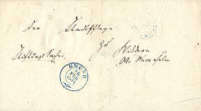 blauer Zweikreisstempel "GMÜND/ 26 FEB 1851" auf Brief nach Widdern |