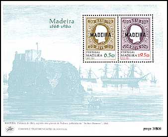 Ersttagspostkarte frankiert mit 2 Marken112 Jahre Briefmarken auf Madeira