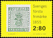 Schweden 3 Skilling 1855 gelborange (Farbfehldruck)