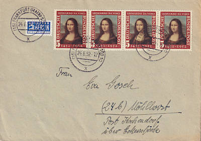 Inlandsbrief frankiert mit 4 Marken Mona Lisa