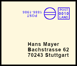 kopfstehender Freistempel: Postsendung die durch eine Fehlleistung mit einem um 180 Grad gedrehten waagrechten Freistempel versehen wurde |