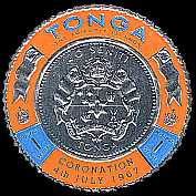 Gold Coin Stamp: round postage stamp printed and embossed on gold foil |