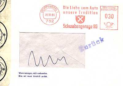 Sender Meter Stamp: postal shipment with meter stamp from a private person or company (private meter stamp) |