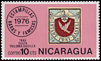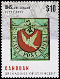 Basler Täubchen: Dauerbriefmarke der Kantonalpost in Basel (Schweiz) 1845 mit der Abbildung des Stadtwappens |