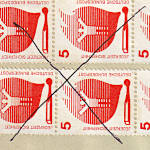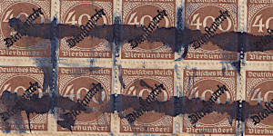 Ballpoint Pen Cancellation: handwritten cancellation of a postage stamp with a ballpoint pen to prevent it from being used again