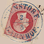 Postablagehandstempel: Entwertungs-stempel einer Postablage mit Angabe des Einlieferungsorts und der übergeordneten Postfiliale |