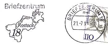 Briefzentrummaschinenstempel: Ent-wertungsstempel der als Aufgabestempel in einem Briefzentrum eingesetzt wurde |