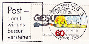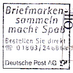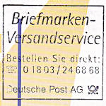 Eigenwerbungeinsatzstück: Teil eines Maschinenstempels der Reklame für Dienst-leistungen der Post macht |