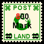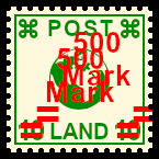 Forgery with Overprint: deceitful reprint of a postage stamp, all parts are bogus (design print, perforation, overprint) |