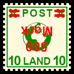 Inverted Fake Overprint: original postage stamp with 180 degrees rotated deceitful bogus overprint |