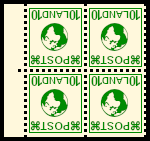schräges Markenheftchen: Markenheftchen dessen Schnittkanten nicht parallel zum Druckbild ausgerichtet sind |
