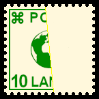 Oily Paper Print: postage stamp with caused by printers waste seeming printed on oily paper caused by to much printing oil (glassy paper) |