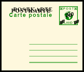 Albino Postal Stationery Overprint: postal stationery with caused by printers waste colourless instead coloured postal stationery overprint; only the embossed outlines are visible |
