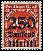 Briefmarken in unterschiedlichen Farben mit schwarzem Aufdruck "250 Tausend" oder "800 Tausend"