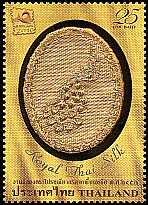Briefmarken mit aufgeklebter bedruckter oder gestickter Seide |