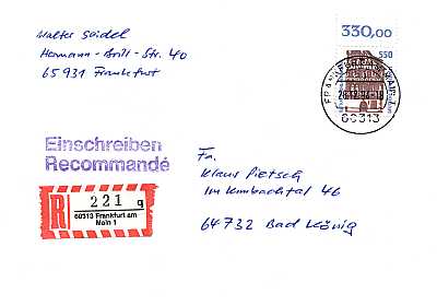 Hinweisvermerkfarbänderung: Postsendungen die zeitlich versetzt mit dem gleichen Hinweisvermerk in unterschiedlichen Farben versehen wurden |
