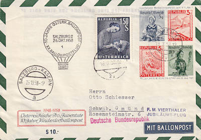 Hinweisvermerk Ballonpost: Vermerk der auf eine Zusatzleistung hinweist bei der die Beförderung auf Wunsch des Absenders mit einem Heißluftballon erfolgt |