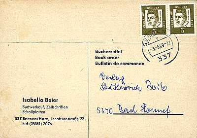 Hinweisvermerk Bücherzettel: Vermerk der auf eine gebührenbegünstigte Grund-sendung für die Bestellung von Bücher und anderen Druckwerken hinweist |