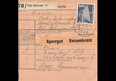 Hinweisvermerk Sperrgut: Vermerk der auf eine Zusatzleistung für eine großformat-ige Paketsendung hinweist die die Höchst-maße für Standardpakete überschreitet |