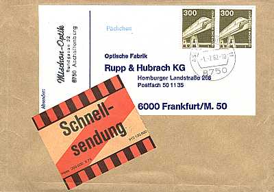 Hinweisvermerk Schnellpaket: Vermerk der auf eine Zusatzleistung hinweist bei der ein Pakete so schnell wie möglich zum Be-stimmungspostamt befördert und durch einen besonderen Boten sofort dem Empfäng-er zugestellt wird |