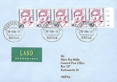 Hinweisvermerk Schülerbrief: Vermerk der auf eine gebührenbegünstigte Grund-sendung für den Versand von Brieffreund-schaftsbriefen zwischen Schülern hinweist die im internationalen Verkehr mit Luftpost zum Landtarif befördert wurden |