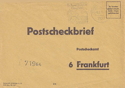 Hinweisvermerk Postscheckbrief: Ver-merk der auf eine meistens gebührenfreie Postsendung zwecks Einreichung von Auf-trägen von einem Kontoinhaber an sein Post-scheckamt hinweist |