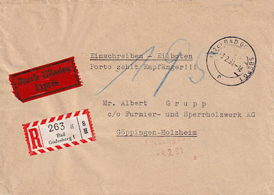 Hinweisvermerk Nachträglich entwert-et: Vermerk auf einer Postsendung bei der die Frankatur (teilweise) nicht unmittelbar nach der Einlieferung sondern erst später entwertet wurde |