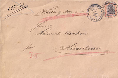 until 30.09.1919: flat postage fee for insured letter 1-250 g (25 Pfennig) + insurance