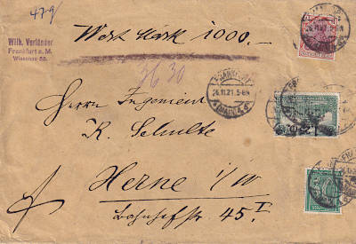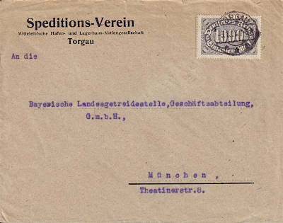 01.08.1923 - 23.08.1923: Inland cover (1-20 g) franked with 1 000 Mark
