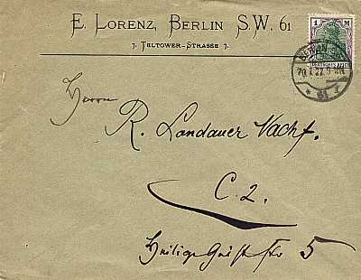 01.07.1922 - 30.09.1922: Local cover (1-20 g) franked with 1,00 Mark