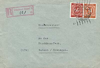 01.03.1946 - 30.08.1948: Inland cover with registeration (1-20 g) franked with 84 Pfennig (=24 cover 60 registeration)
